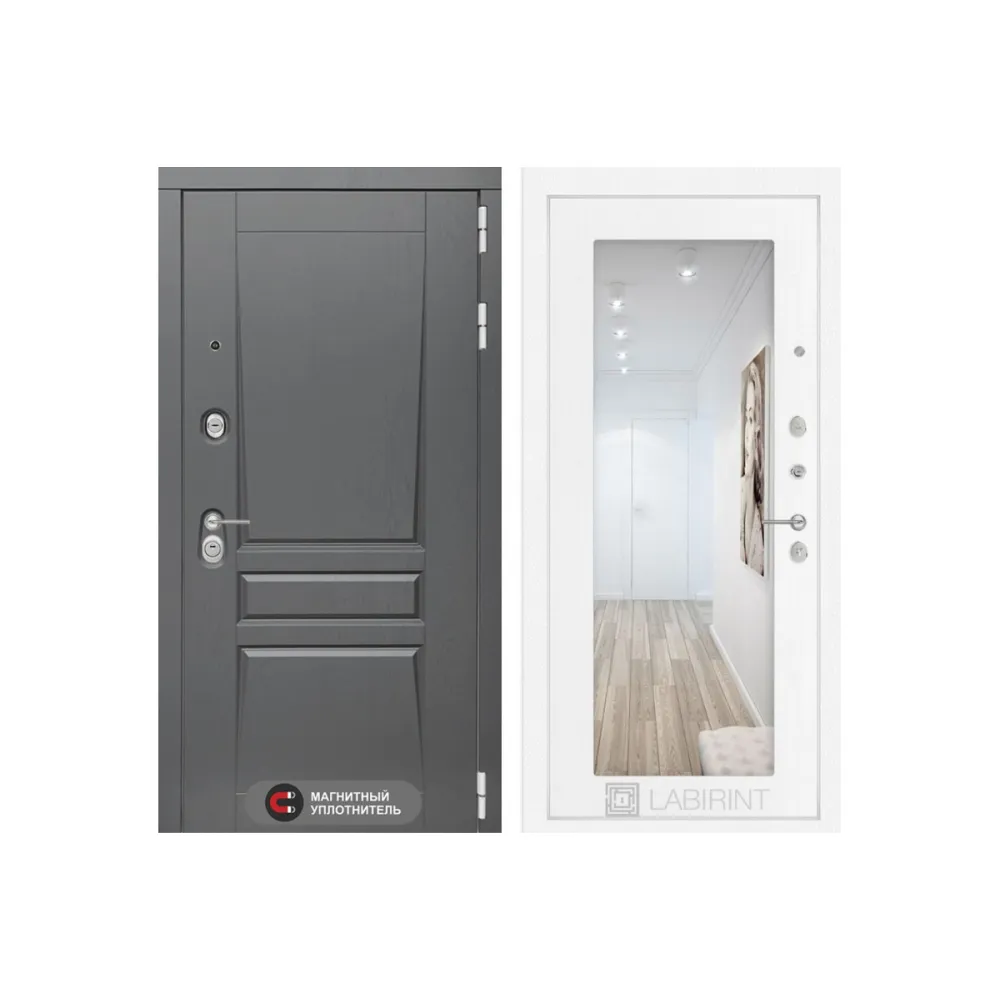 Входная дверь Лабиринт Платинум с Зеркалом 18 (цвет Белое дерево)