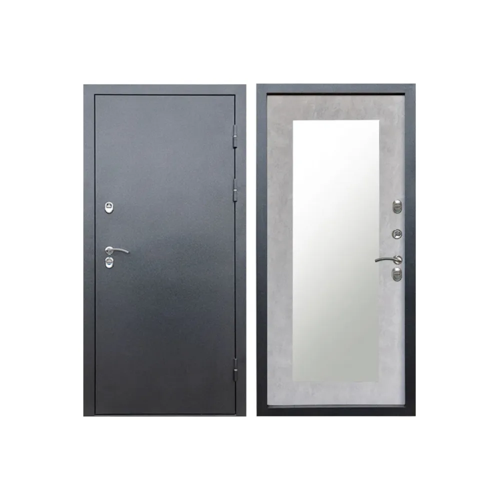 Дверь с терморазрывом Termo Сибирь Серебро с зеркалом Триумф Бетон Светлый