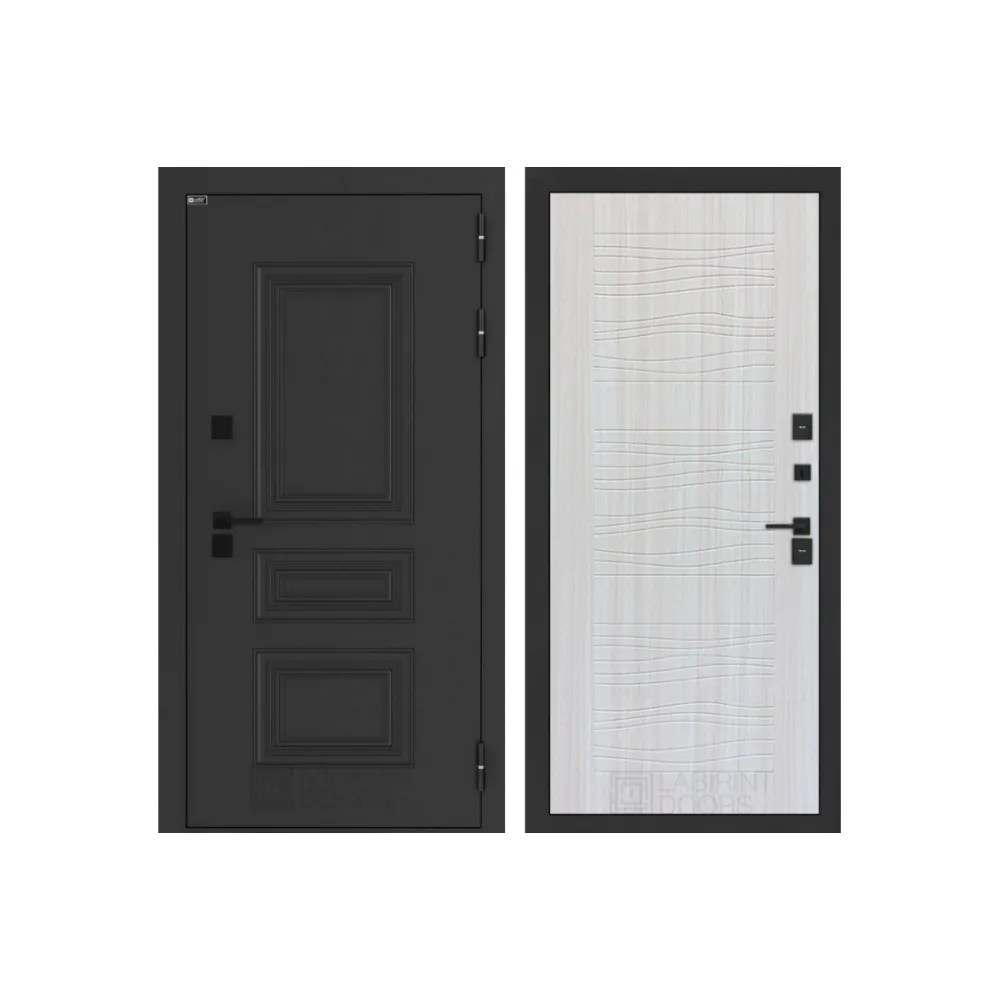 Черная фурнитура (полимерная): накладки сувальдные со шторкой, дверная ручка, ночная задвижка, металлический эксцентрик с защитной вставкой.