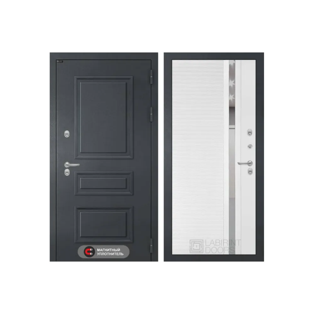 Входная дверь Атлантик 31 - Белый софт, зеркальная вставка с тонировкой