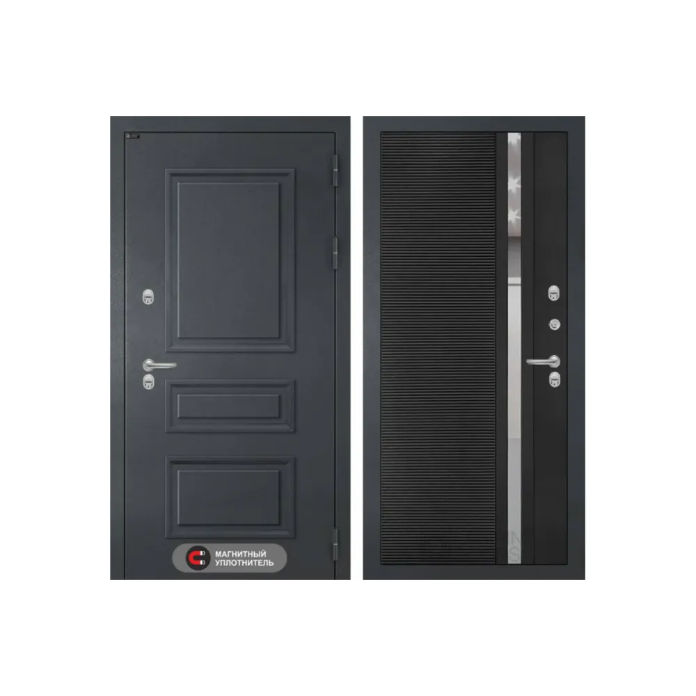Входная дверь Атлантик 31 - Черный кварц, зеркальная вставка с тонировкой