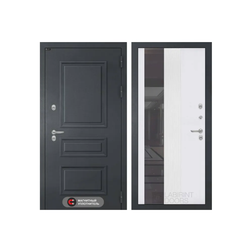 Входная дверь Атлантик с Зеркалом 32 тонированным - Белый рельеф софт