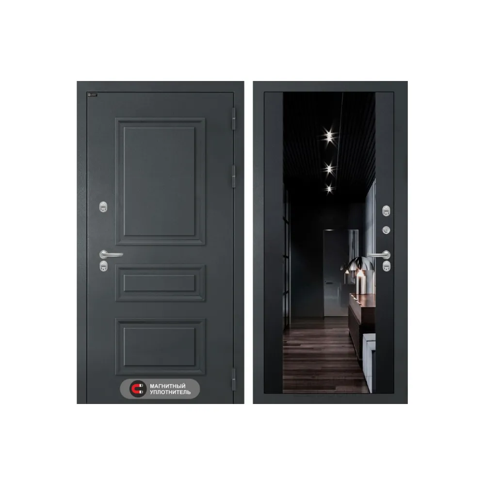 Входная дверь Атлантик с Зеркалом тонированным Максимум - Черный кварц