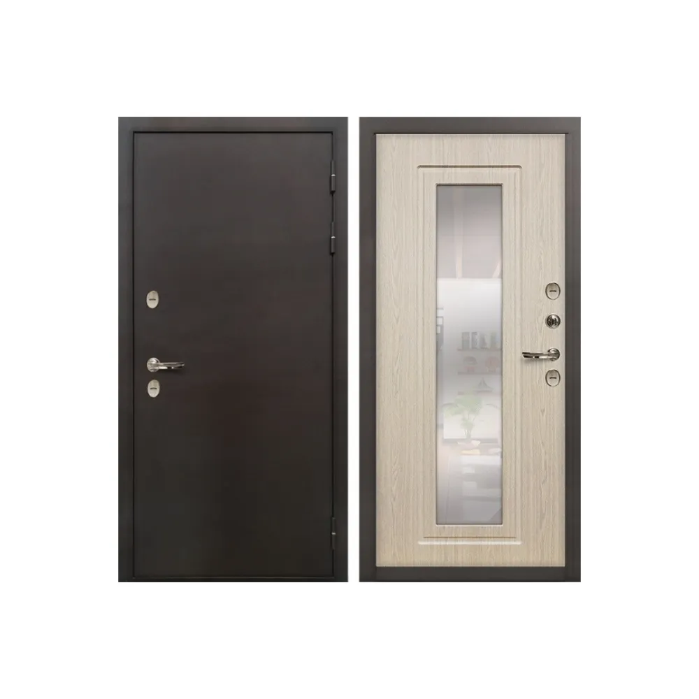 Входная дверь с терморазрывом Лекс Термо Сибирь 3К с Зеркалом Беленый дуб (панель №23)