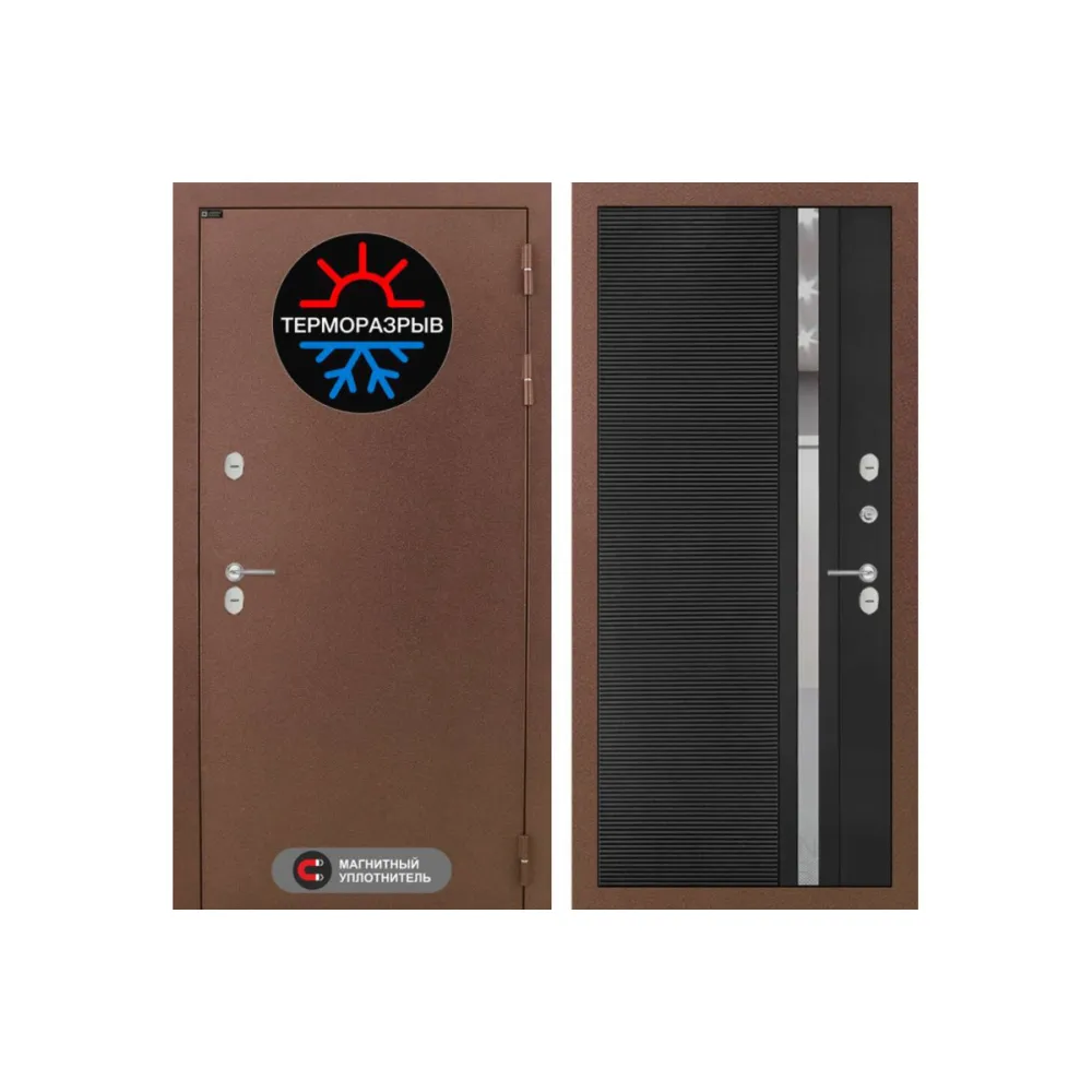 Входная дверь Термо Магнит 31 - Черный кварц, зеркальная вставка с тонировкой