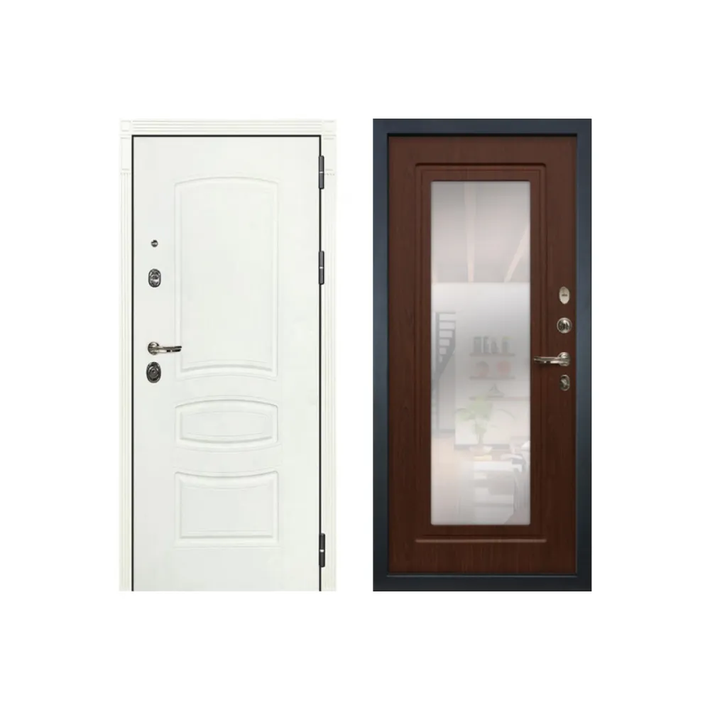 Металлическая дверь Лекс Легион Белая с зеркалом береза мореная ( панель №30)