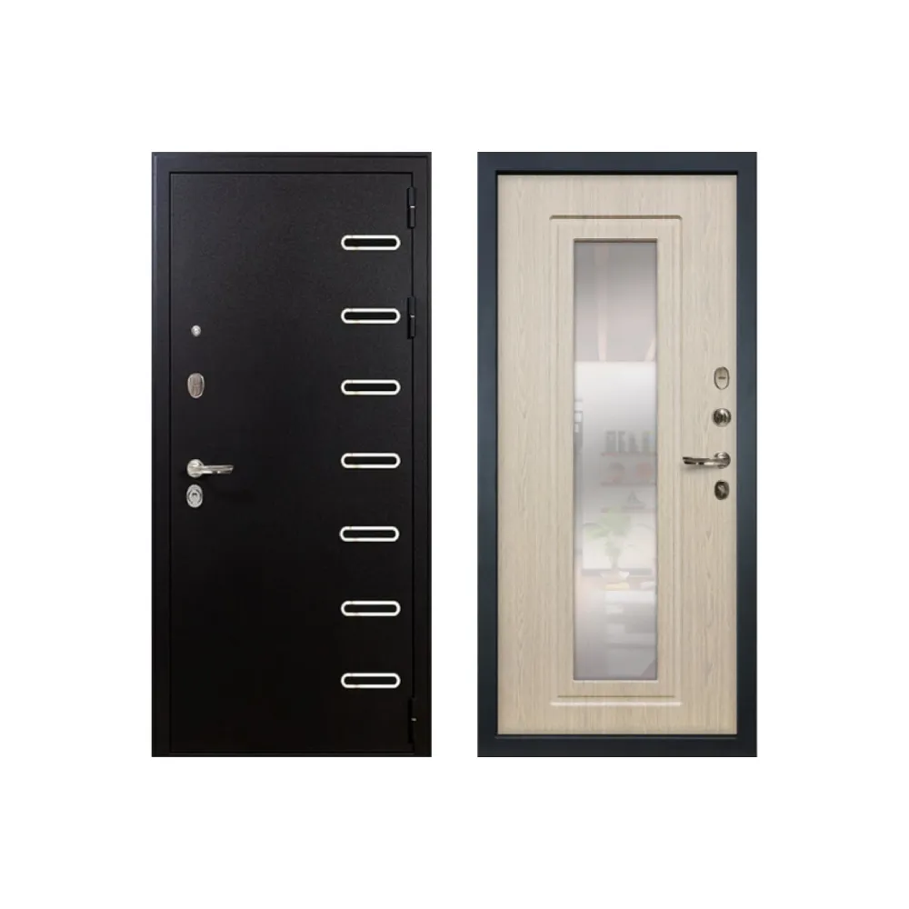Металлическая дверь Лекс Витязь с зеркалом беленый дуб ( панель №23)