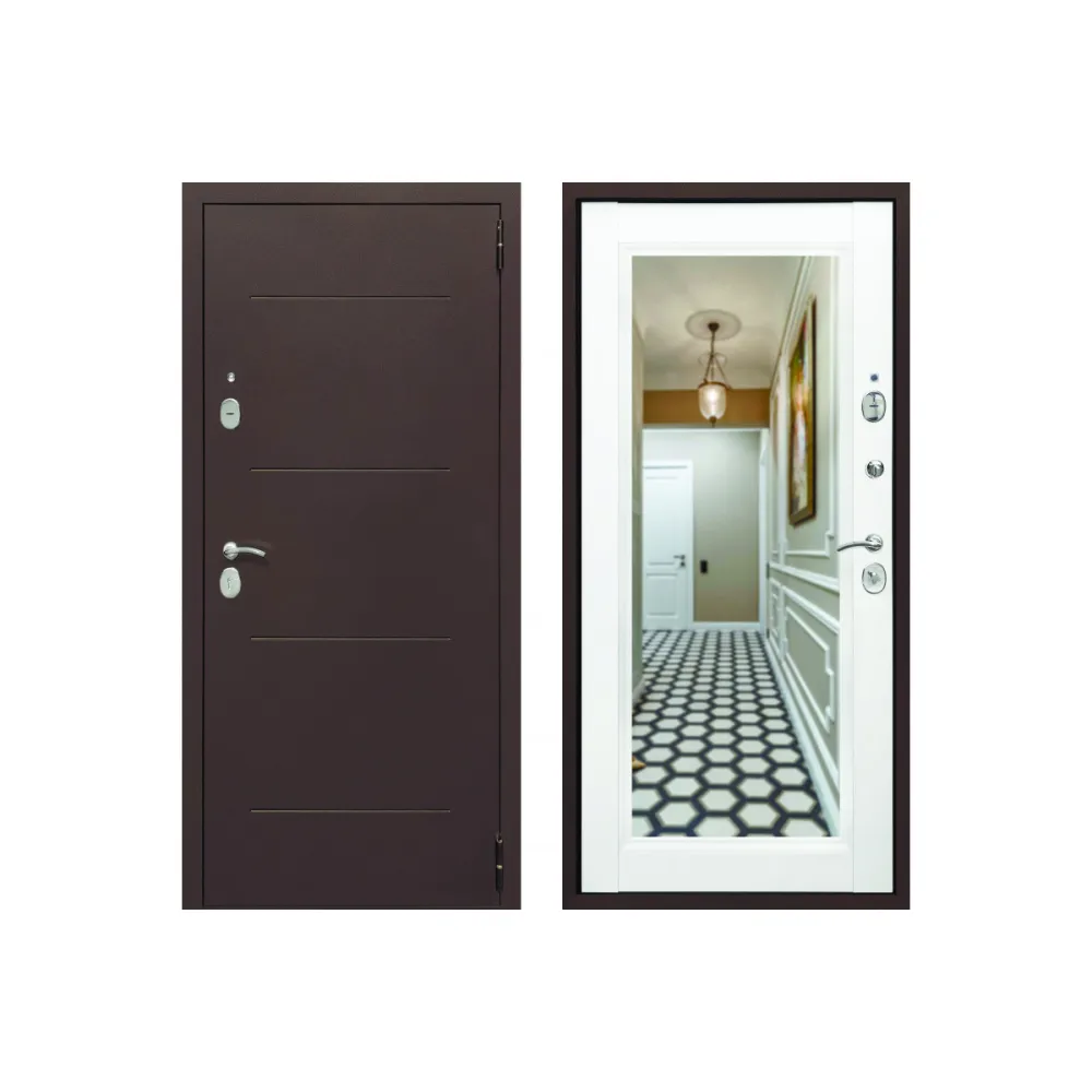 Металлическая дверь СТОП Альт зеркало Белый Матовый