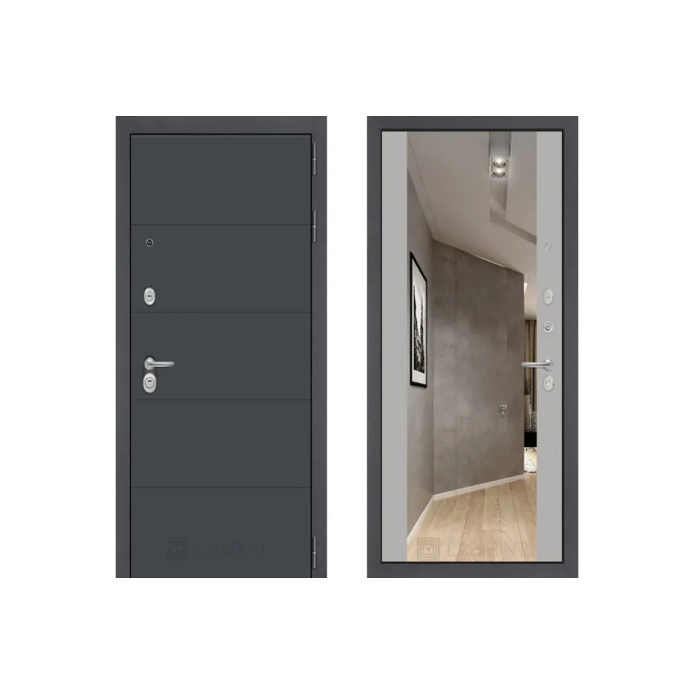 Серая входная дверь Labirint ART графит с зеркалом Макси Грей Софт