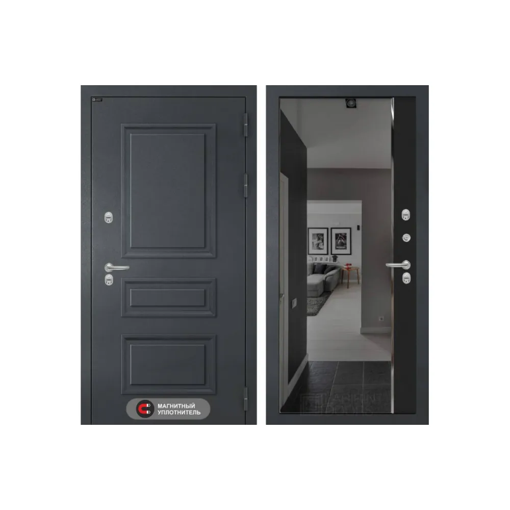 Входная дверь Атлантик с зеркалом Панорама с тонировкой - Черный кварц