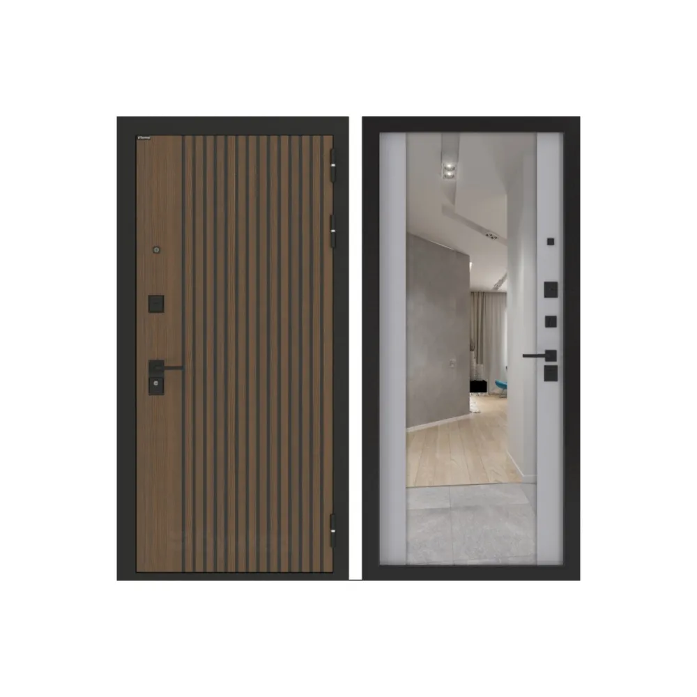 Входная дверь BN-02 с зеркалом ФЛЗ-1 Лайт грей софт
