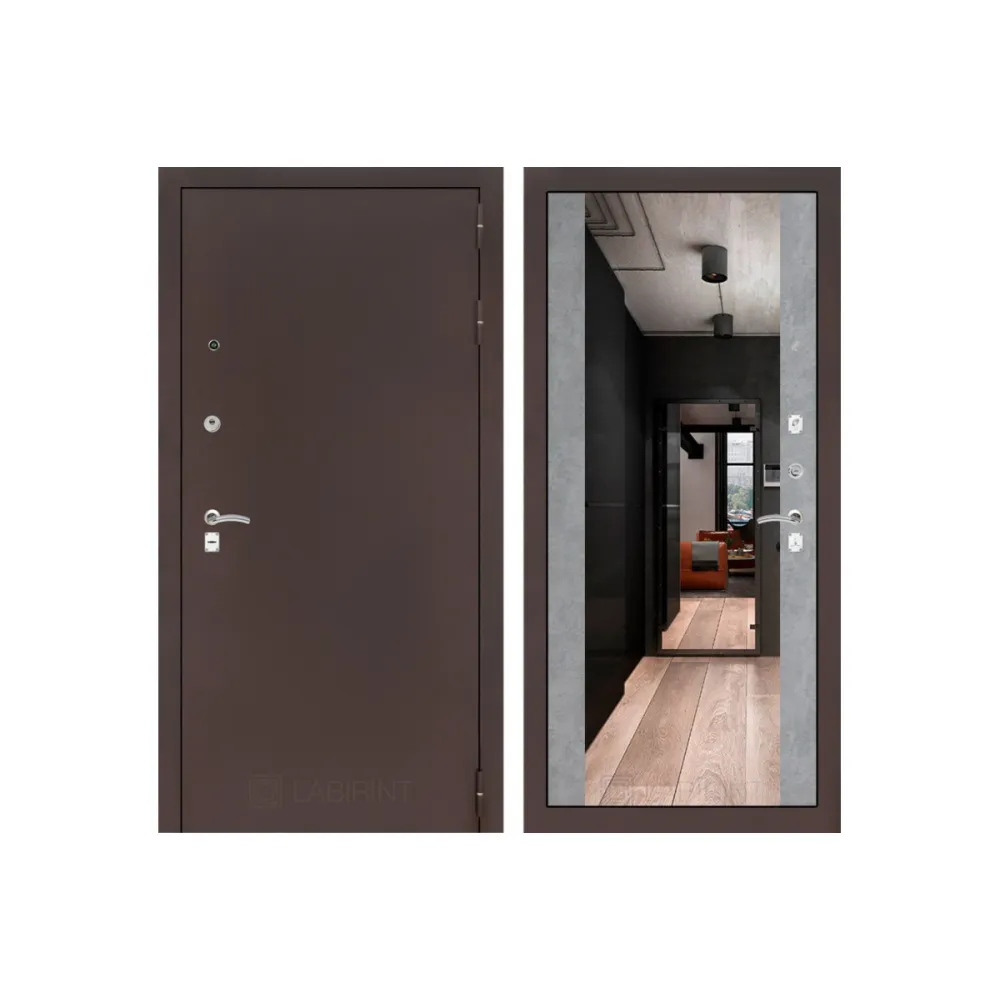 Входная дверь CLASSIC антик медный с Зеркалом Максимум - Бетон светлый