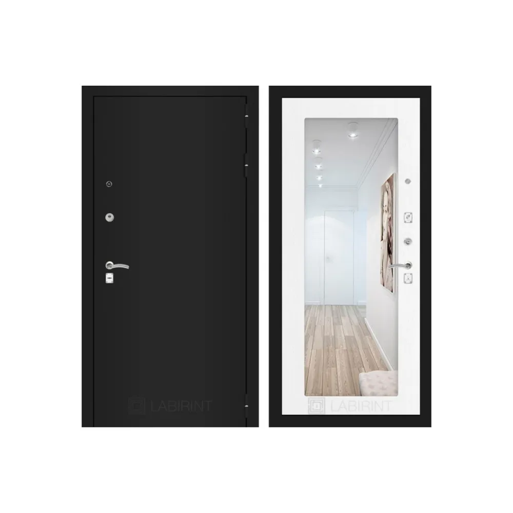 Входная дверь Labirint CLASSIC шагрень черная с Зеркалом 18 - Белое дерево