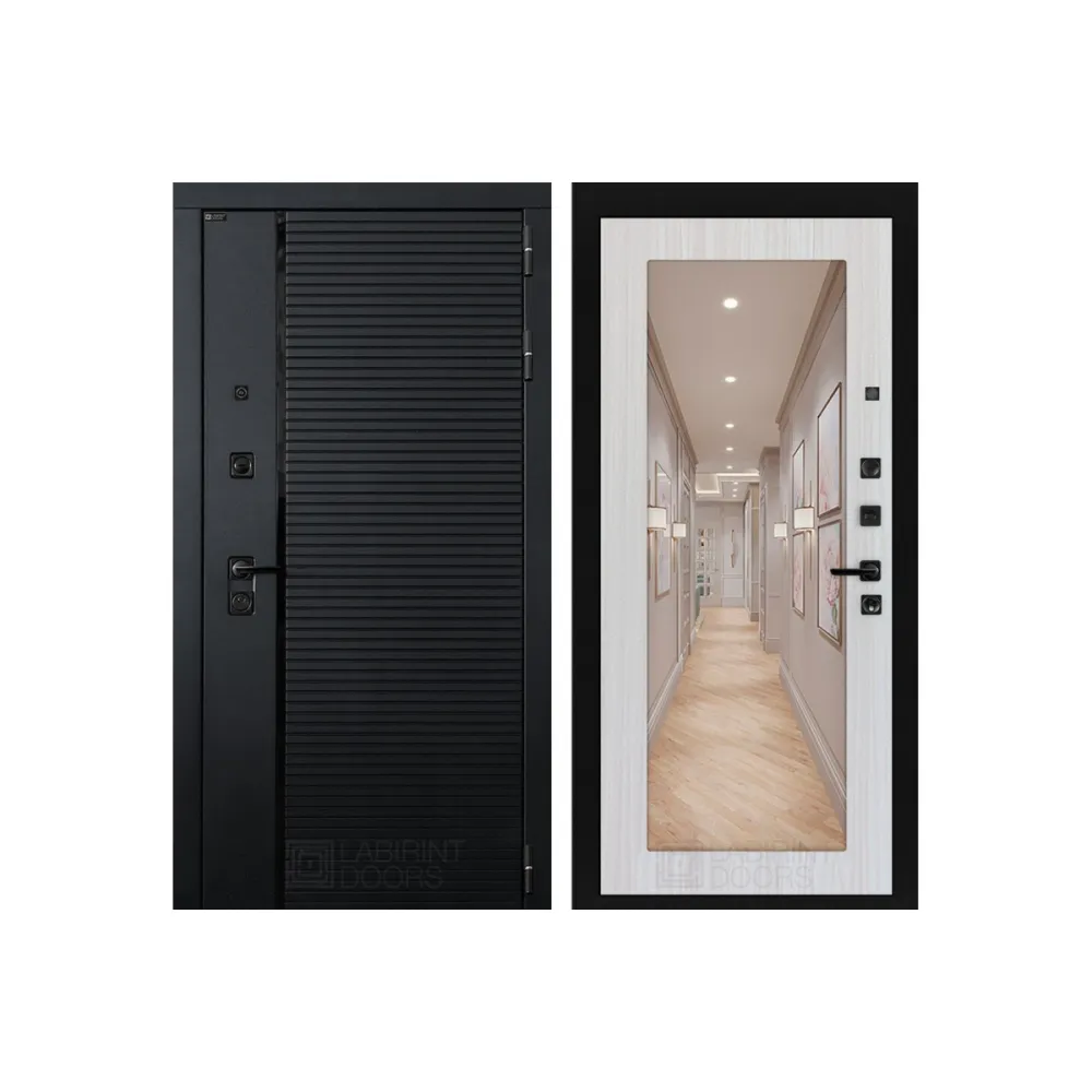 Входная дверь Лабиринт PIANO с зеркалом 18 - Сандал Белый