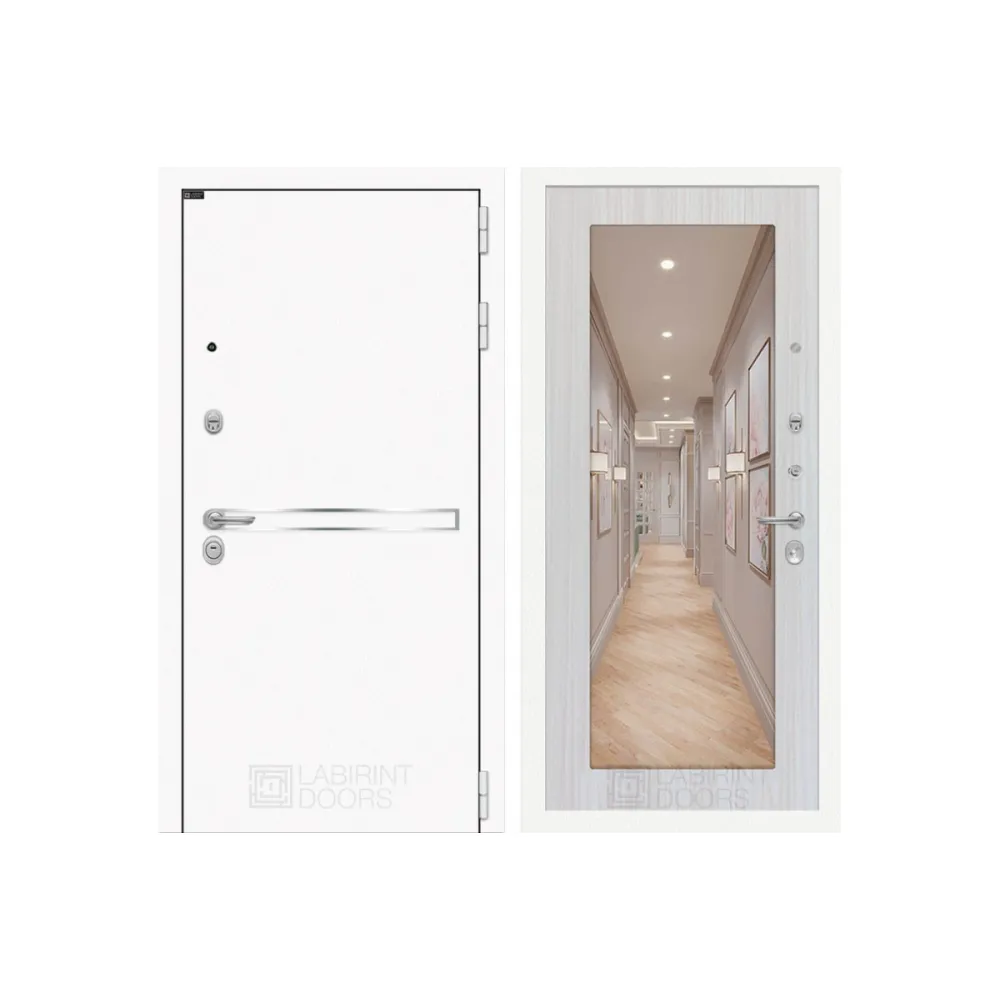 Входная дверь Лайн WHITE с Зеркалом 18 - Сандал белый