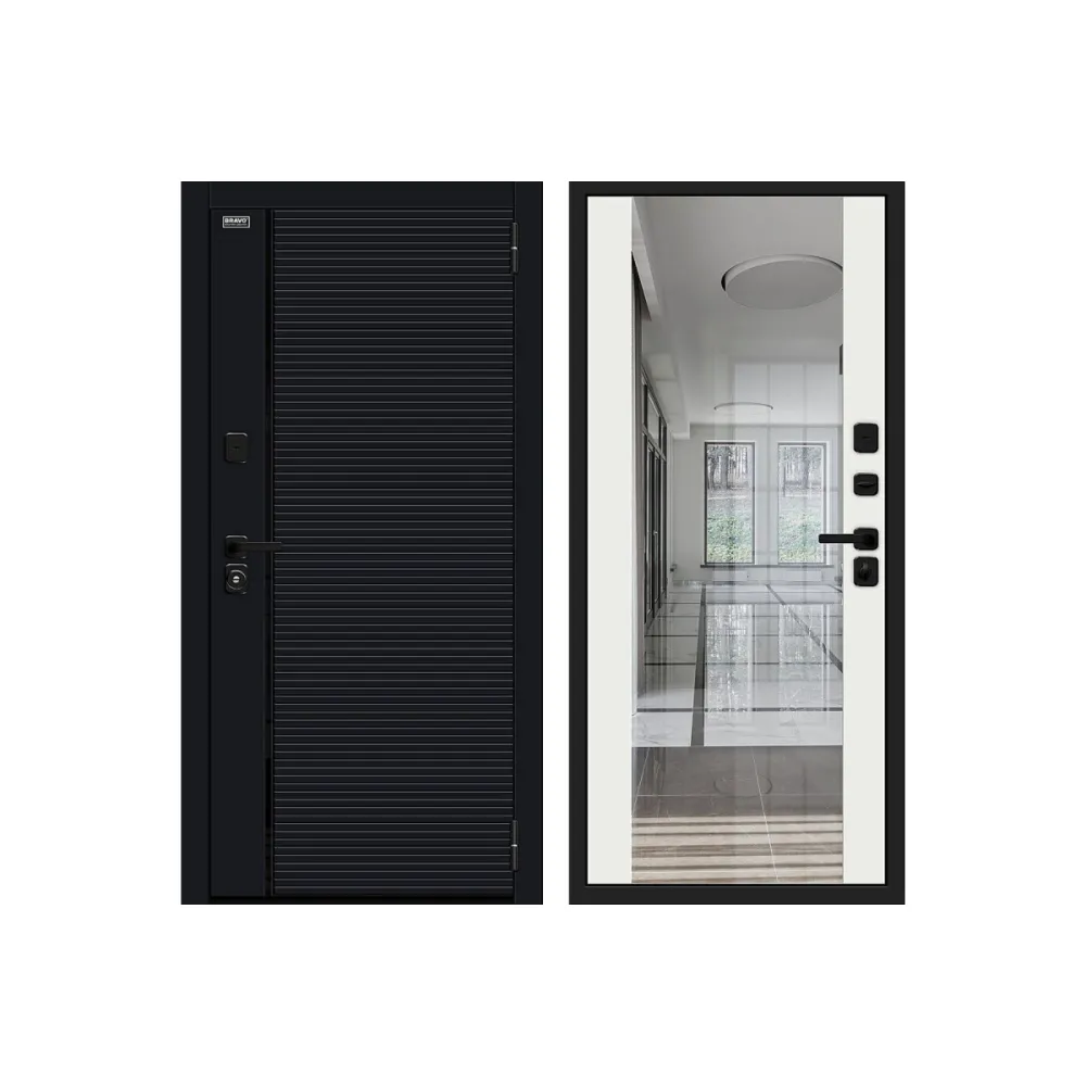 Входная дверь с зеркалом Браво Лайнер-3 Total Black/Off-white