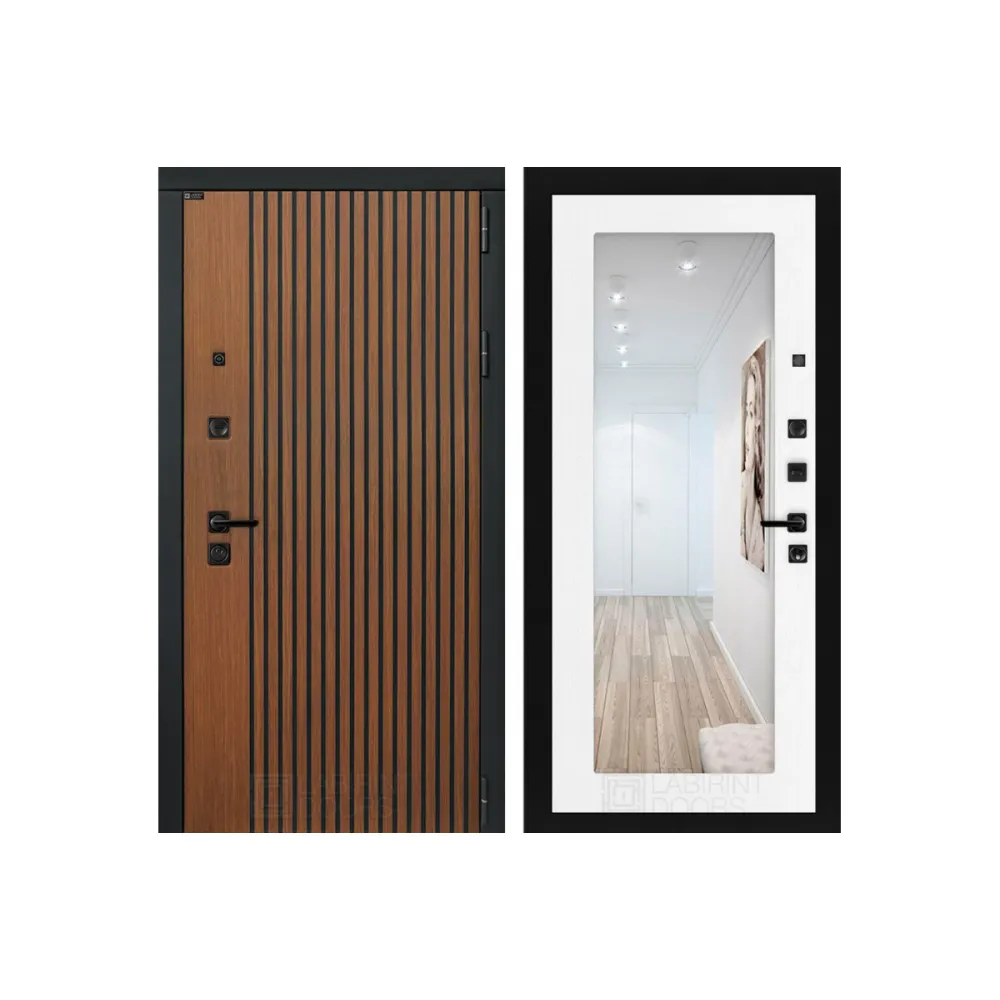 Входная металлическая дверь Лабиринт STORM с Зеркалом 18 - Белое дерево