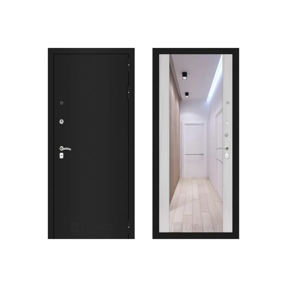 Входная металлическая дверь с зеркалом Labirint Classic шагрень с зеркалом Макси Сандал Белый