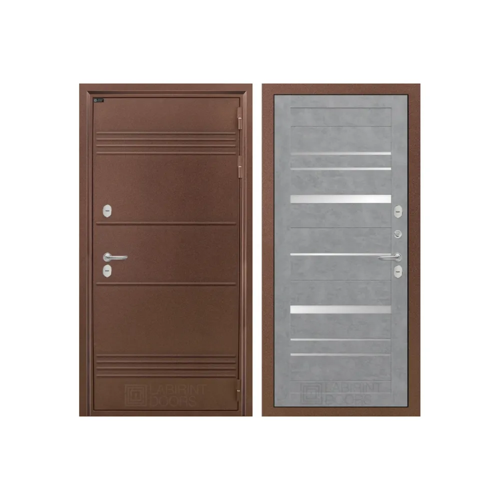 Входная дверь с терморазрывом Лабиринт Термо Лайт 20 - Бетон светлый, зеркальные вставки
