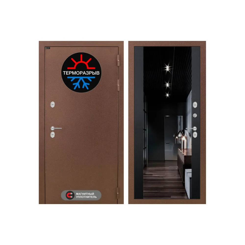 Входная дверь Термо Магнит с тонированным зеркалом Максимум - Черный кварц