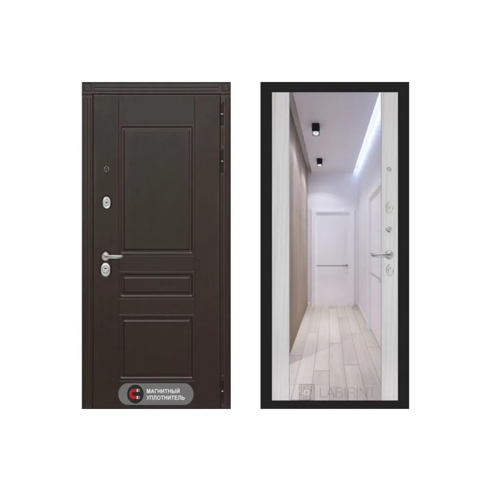 Входная металлическая дверь Labirint Megapolis Макси Сандал Белый зеркало