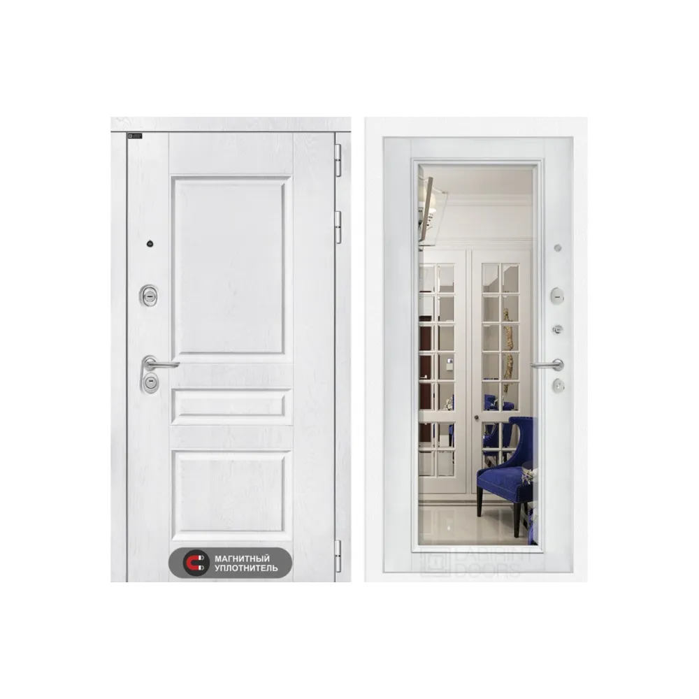 Входная металлическая дверь Лабиринт VERSAL с Зеркалом Фацет - Белый софт