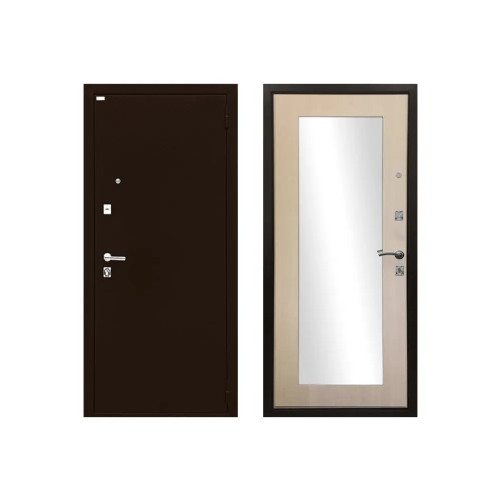 Зеркальная металлическая дверь Ратибор Люкс зеркало (Цвет ЭкоДуб) с зеркалом одностворчатая